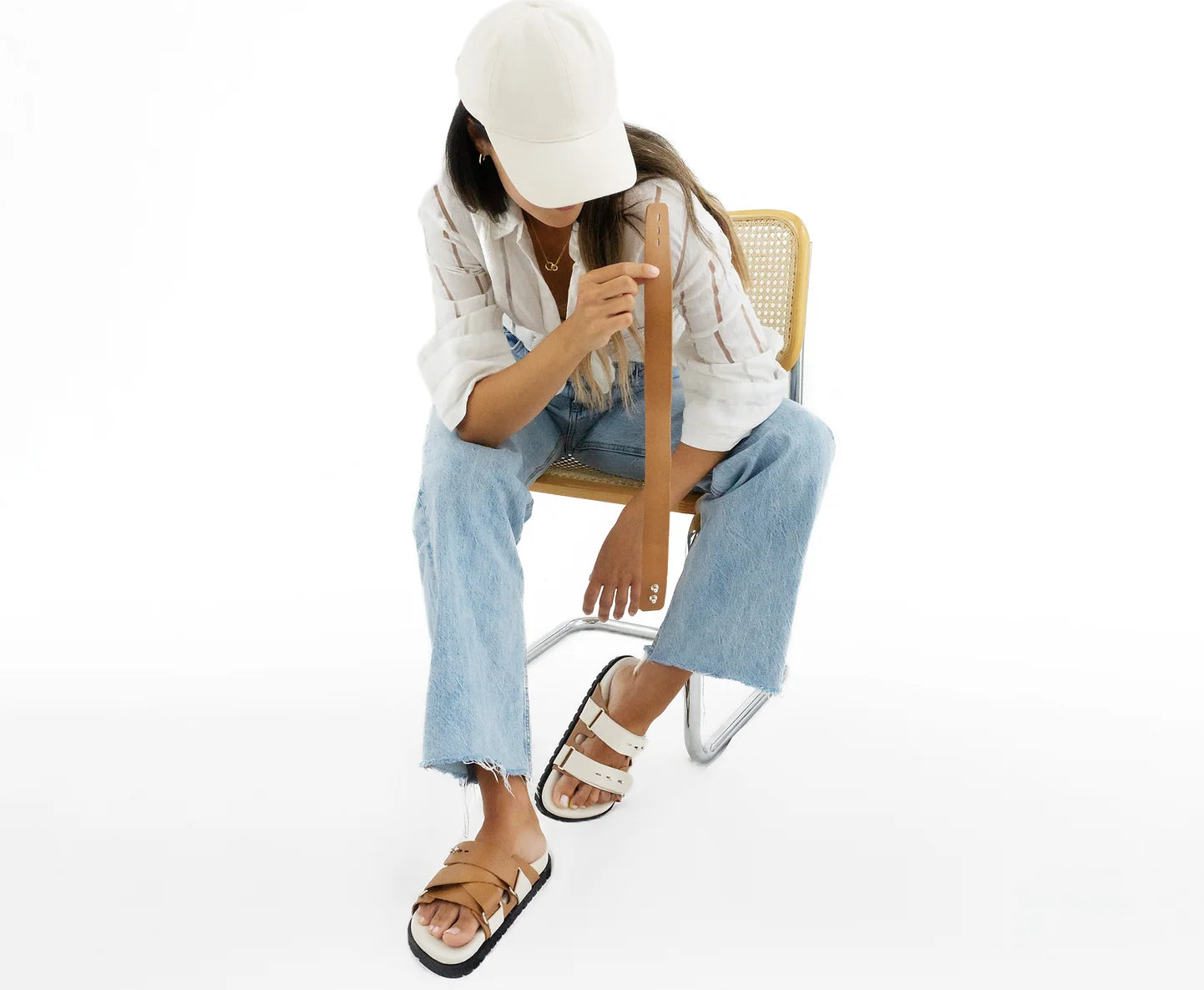Design your sandals according to your personal taste in our configurator. Choose your preferred colours, and change the type of the straps for extra variety.